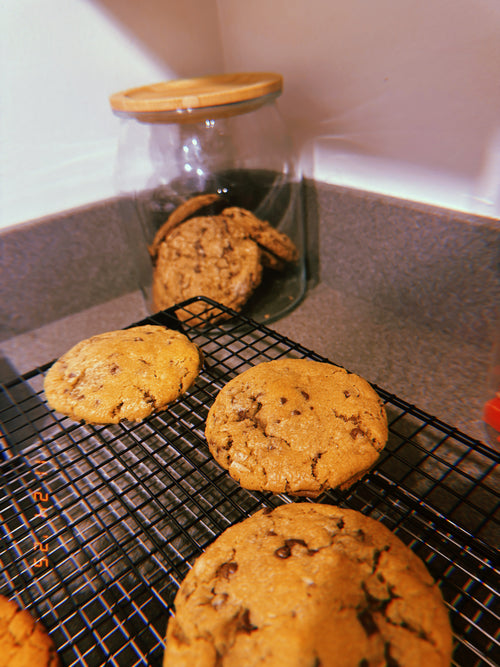 Browned butter, brown sugar, subtle coconut, classic M&Ms, and mini M&Ms.....a sophisticated twist on a classic. 3 cookies for $7